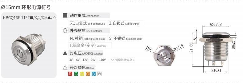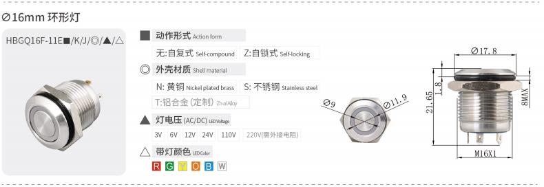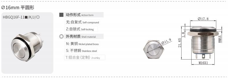 金属按钮开关外壳采用金属材料,与塑料开关相比,不仅增强了其美观性外观颜色可多样化,并且大幅度提升了头部(安装面板以上)其防尘防水性能、防爆性能及防腐蚀性等特点。防水等级IP65,防爆能力IK08-K10。
