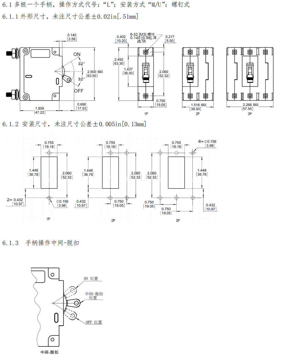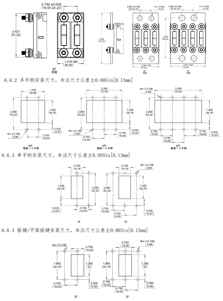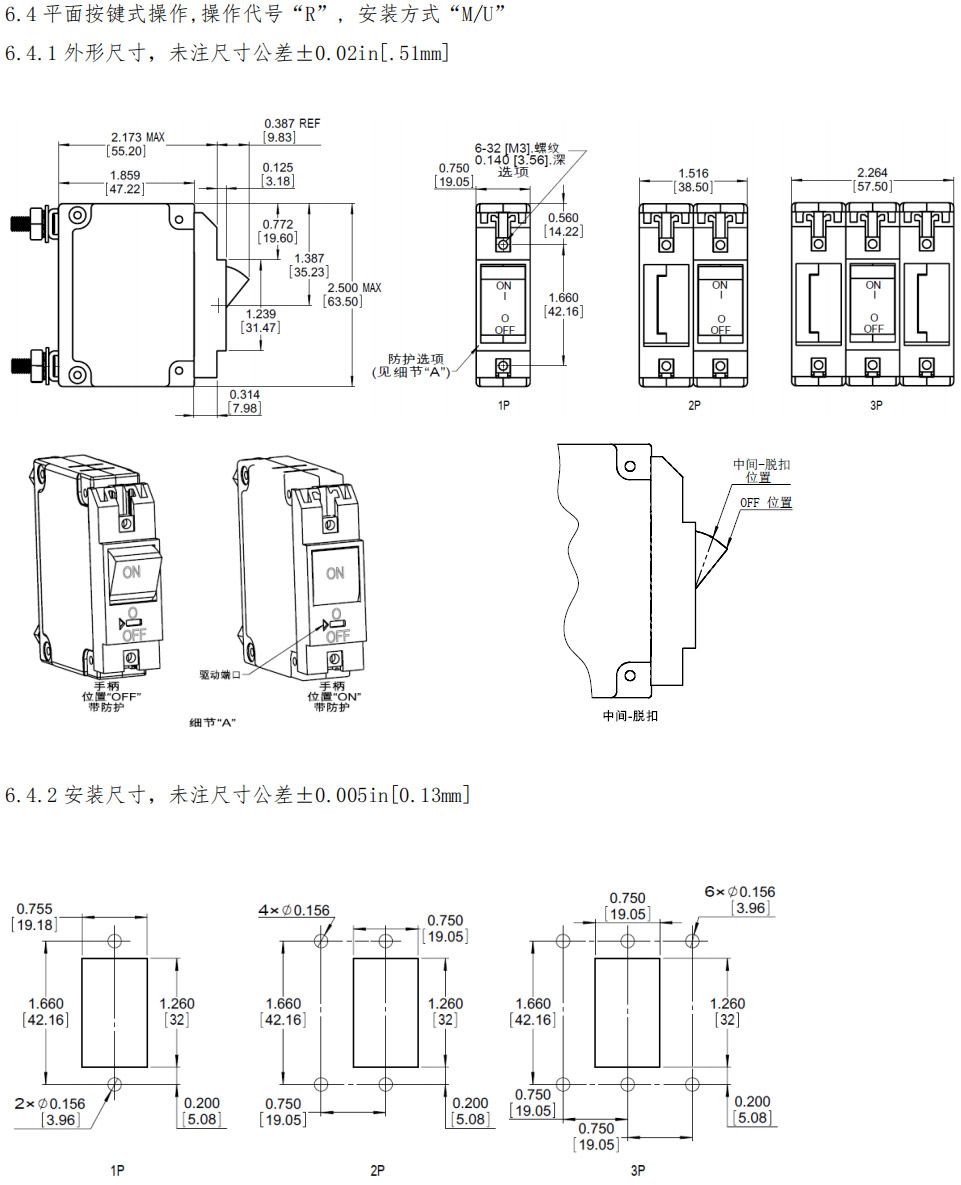 6.6.1 外形尺寸,未注尺寸公差±0.02in[.51mm]