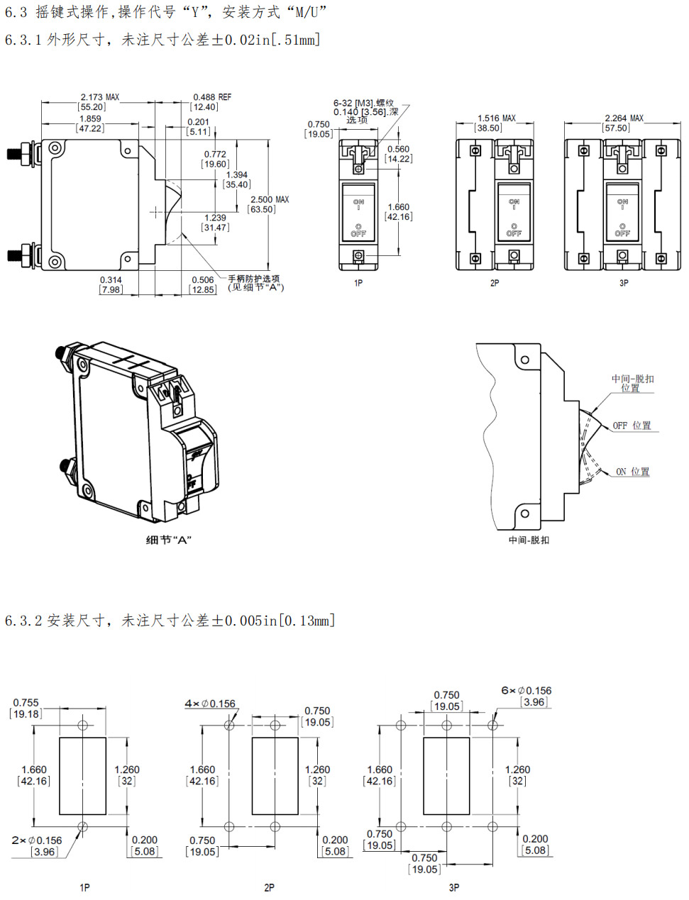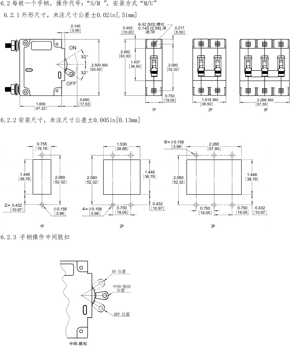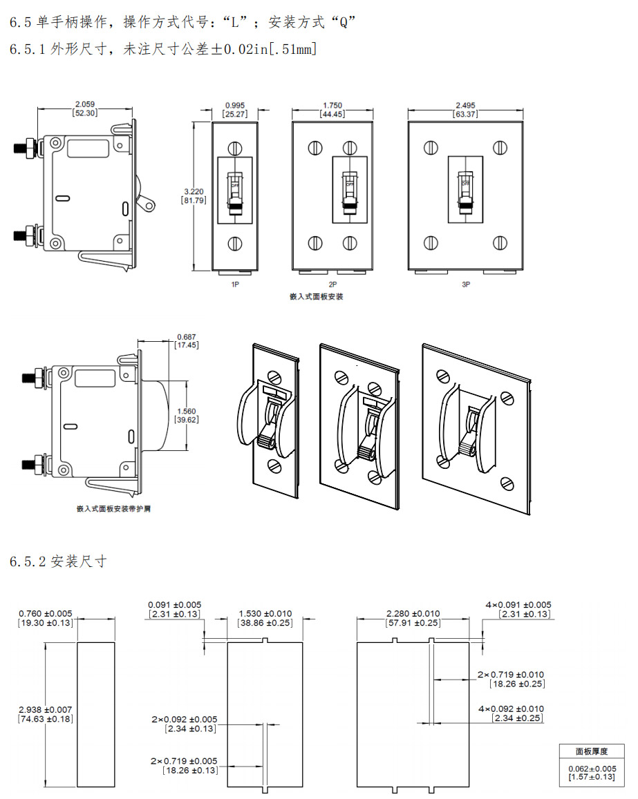 6.6.1 外形尺寸,未注尺寸公差±0.02in[.51mm]
