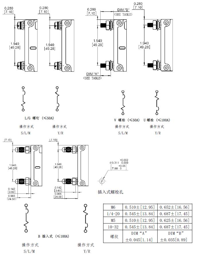 6.6 并联产品,操作方式代号为“S”极数2~4极;操作方式代号为“L/Y/R”极数2~3极;安装方式为“M/U”,端子接线代号为“S/K/U/N”